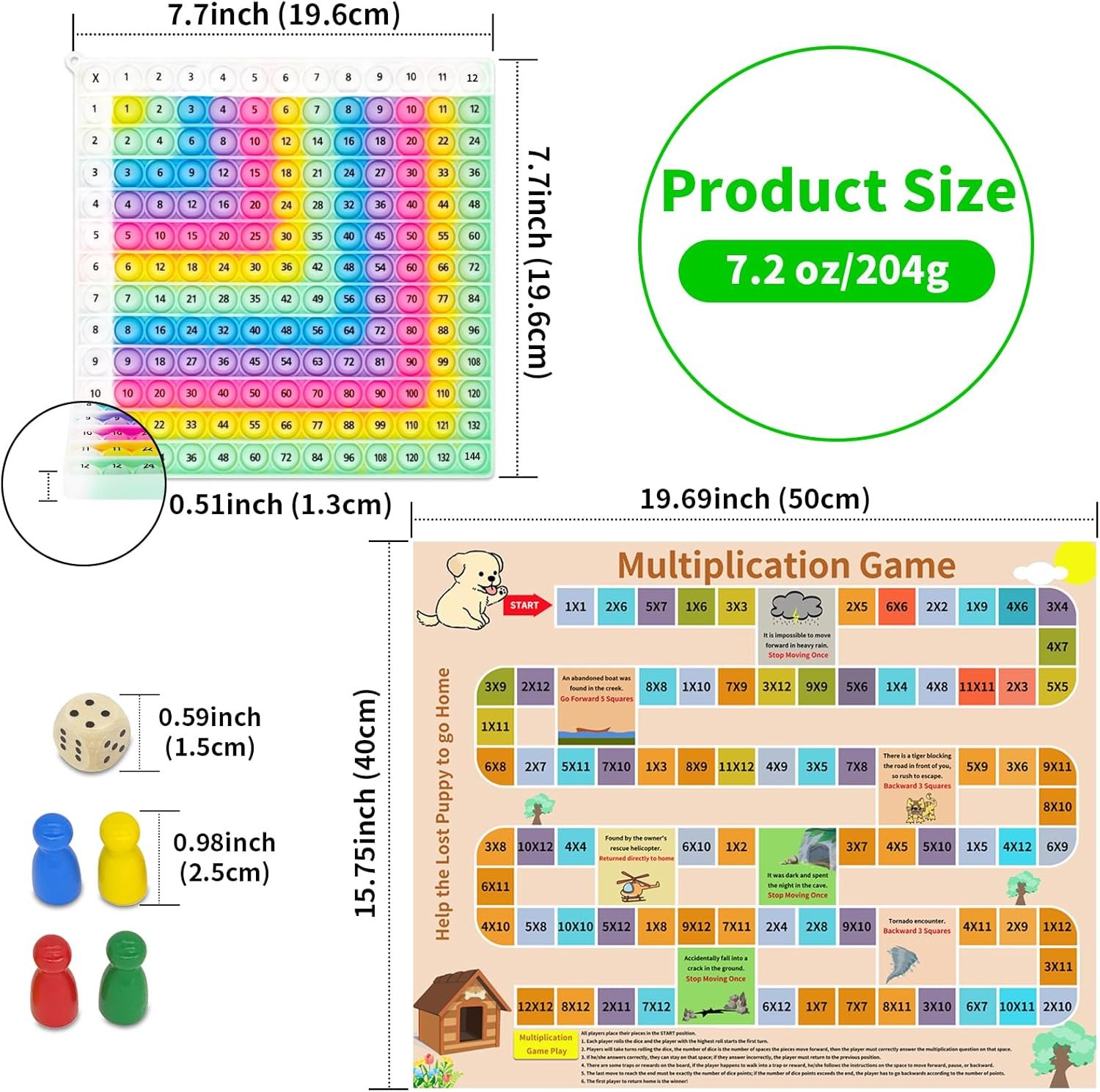 【Multifunctional Multiplication Games and Addition Learning Tools】12X12 multiplication table printing on the P00P bubble toys, so that children think about the connection between mathematics, such as 7X8 = 56, 56 ÷ 7 = 8, etc., so that children understand the logic of multiplication division between operations, so that children learn and have fun at the same time.