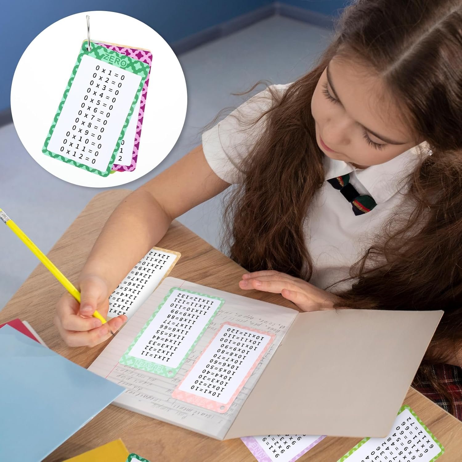 COMPREHENSIVE SET:Includes 13 flash cards multiplication (0-12) and 2 metal flipchart rings, nice for students in 1st to 3rd grades to improve math skills and boost scores