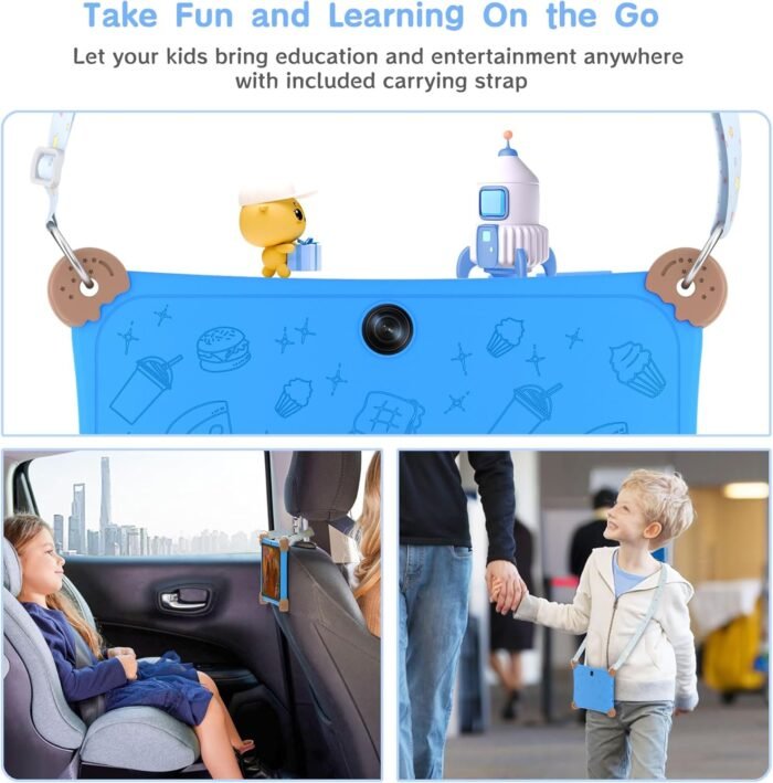 ✅FUN & TOUGH PROTECTION – The donut silicone pads and rounded corners create a lightweight, durable case built to withstand your kid’s adventures. CPC-certified material is safe for kids. The included adjustable strap lets them carry the tablet around safely. With its playful patterns and colors plus advanced shockproof features, this tablet enables kids worry-free play!