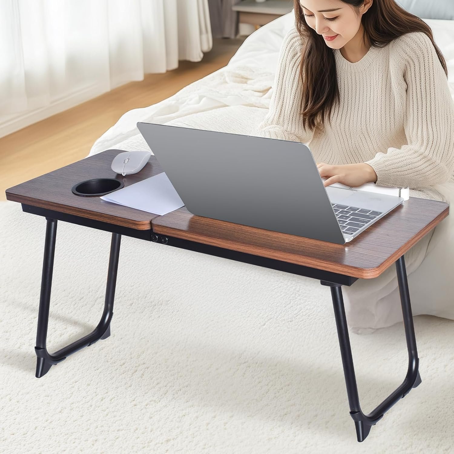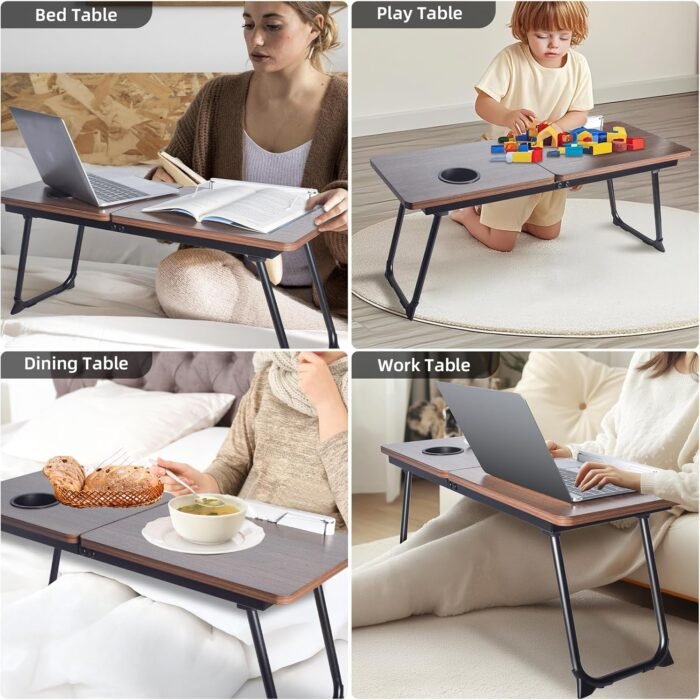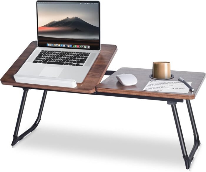 28.7″ Foldable & Adjustable Laptop Bed Tray Table – Extra Large Portable Lap Desk with Phone Holder & Cup Holder, Lightweight & Sturdy for Working, Eating, Reading, Writing in Bed, Couch, Floor