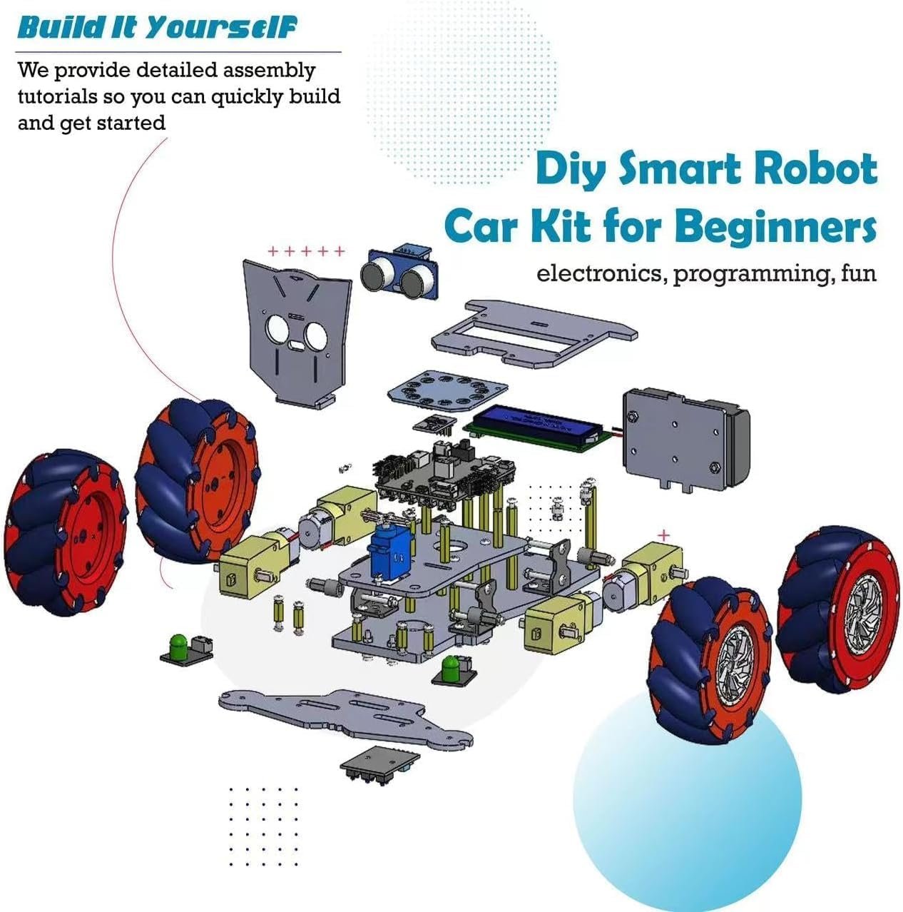 If you love robots, the best way to get close to them is to learn electronics and coding practical excercise. This 4wd smart robotics is the best and cheap way to start building your robotic project and actually see your robot come to life with your own code!