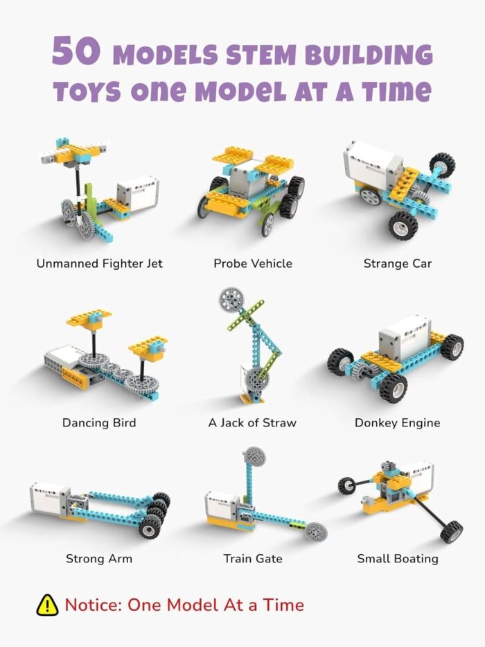 50-in-1 STEM Building Kit:Unleash your child’s creativity with this versatile building set! It can be constructed into exciting models like an unmanned fighter jet, radar vehicle, attack and defense robot, ferris wheel, and other imaginative creations (Notice: one model at a time). Perfect for kids ages 6,7, 8, 9, 10, and up, providing endless fun and challenges. Ideal for those searching for STEM toys for kids ages 6-12, educational toys for boys and girls, and DIY building kits for 8-12 year olds.