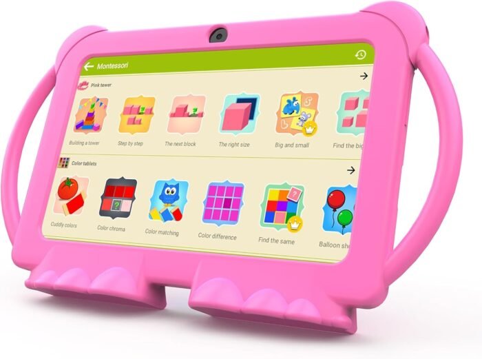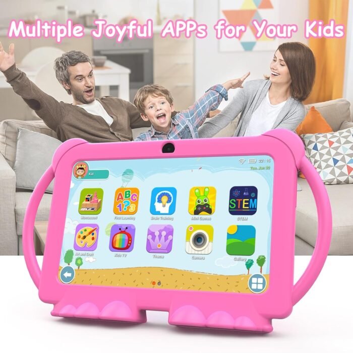 This 7-inch tablet comes with a parental control mode that allows parents to set up individual profiles and accounts for their kids, control screen time, add or block apps, and make sure they’re browsing safe websites.Tablet comes with rear kickstand and cartoon design. Shockproof protective cover is durable and effective in minimizing damage caused by drops. Light weight, easy to hold and carry. Children’s tablet comes with iwawa apps pre-installed. Includes music, drawing, learning, stories, calculations, games and more. You can also download educational apps from Google Play. This kids tablet has a built-in high performance quad-core processor and Android 12 OS. 1280×800 IPS display, Wifi, Bluetooth, Dual Camera, 4GB RAM and 32GB ROM. supports 512GB Sd card expansion. You can store more cartoons, songs and photos.Special Cartoon Design. Whether it’s a birthday or a holiday like Easter, Christmas or school supplies, this kids tablet will be a good choice for your child.