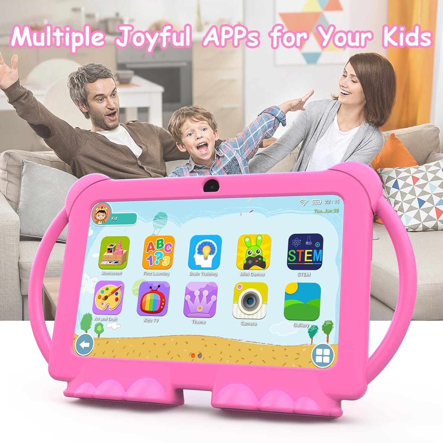 7 inch Kids Tablet – Android 12, 32GB ROM, 2+5MP Dual Camera, Shockproof Case, Educational, Games, Parental Control