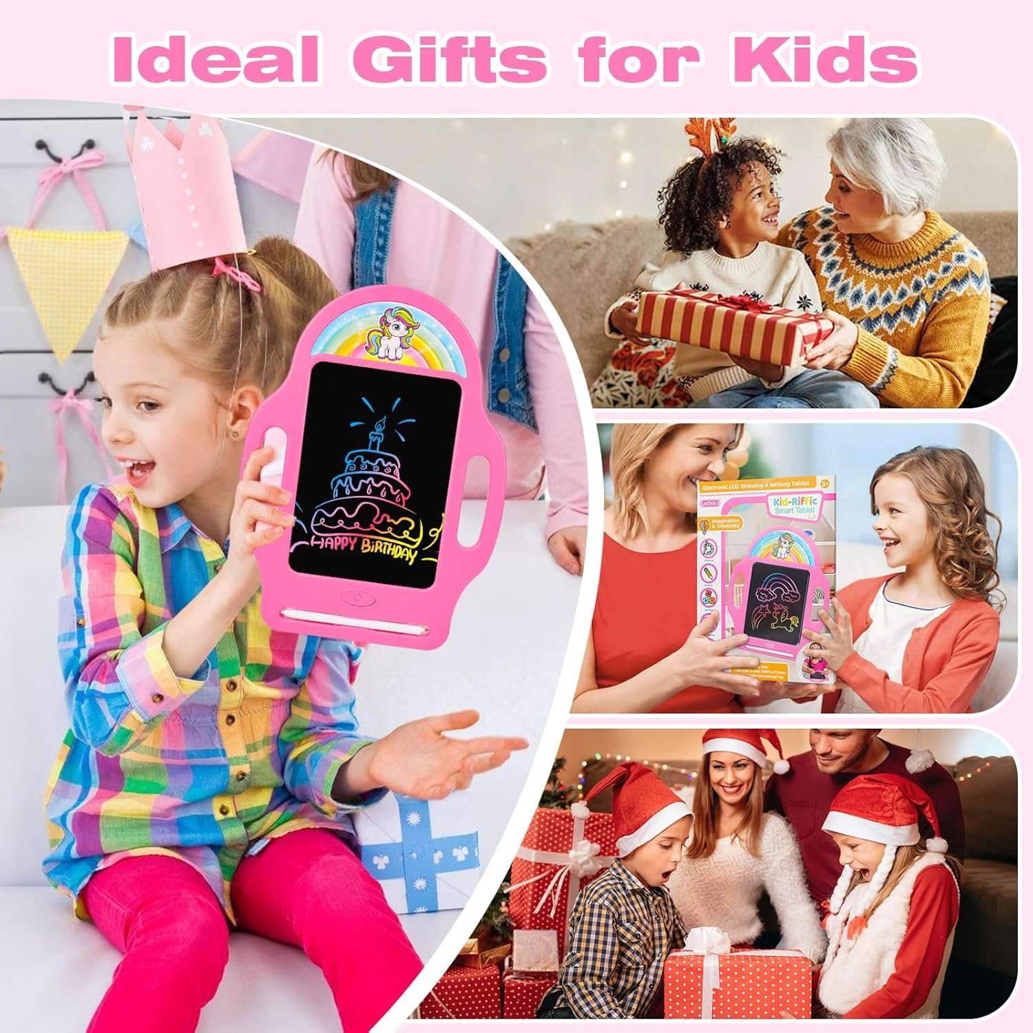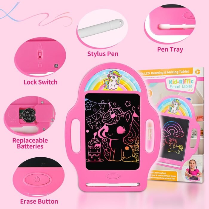 8.5 Inch Magic LCD Writing Tablet for Kids 2-7 – Unicorn Rainbow Learning Doodle Board with Handle, Resusable Mess-Free Drawing Pad, Educational Travel Toy for Toddlers in Car & Airplane Pink