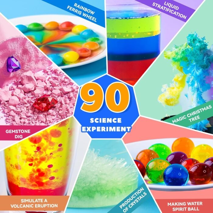 90 POPULAR SCIENCE EXPERIMENTS KIT – The science experiment kit that inspires children to have fun exploring numerous experiments, perfect for sharing with family, friends, or classmates, just like real scientists in a lab! This kit contains our most popular Earth science, chemistry, and science magic experiments.
