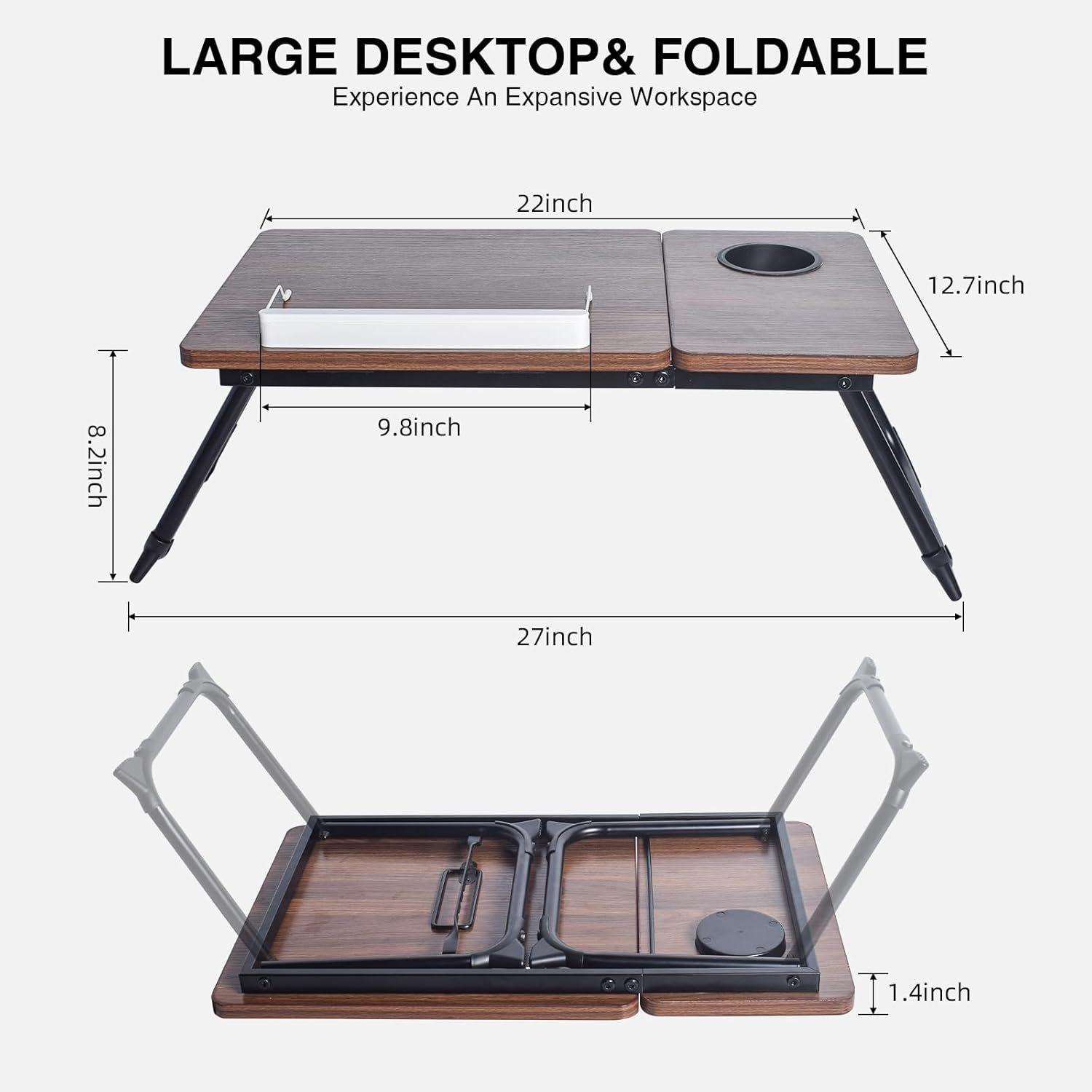 Adjustable Bamboo Lap Desk for Bed – Portable Laptop Tray Table with Foldable Legs, Phone Slot & Cup Holder – Lightweight & Sturdy Breakfast, Work, Study Table for Sofa, Couch, Floor