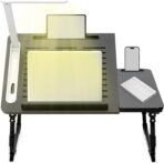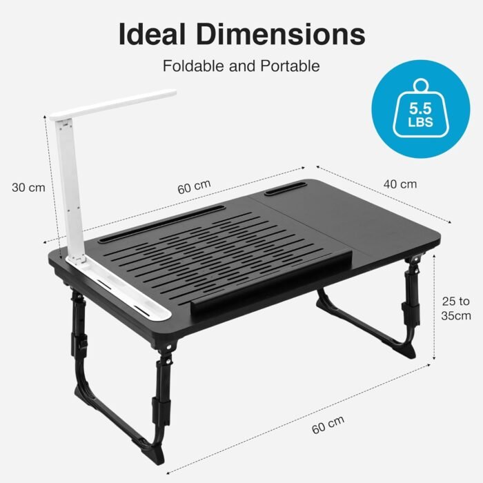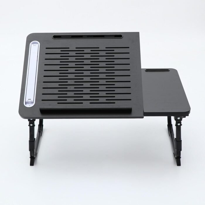 Adjustable Foldable Laptop Table with LED Lamp, Ergonomic Multi-Purpose Portable Desk for Bed, Sofa, or Floor – Ventilated Surface, Sturdy Legs, and Built-in Storage Slots