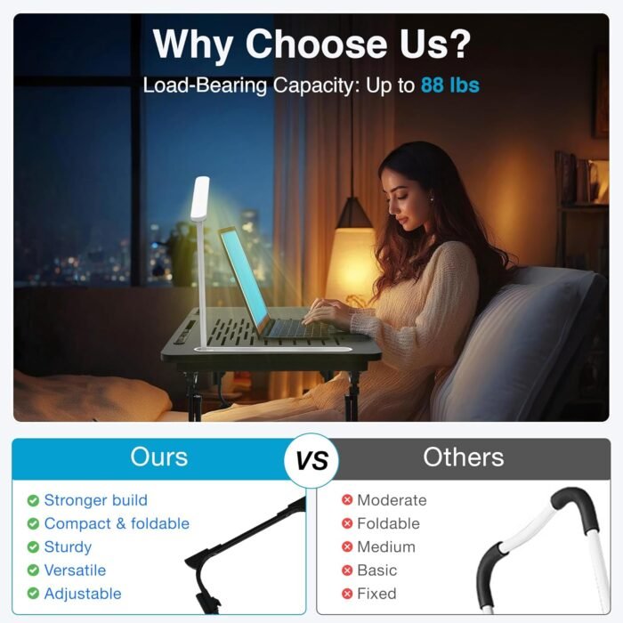 Versatile Multi-Purpose Design – Use it as a laptop table, breakfast tray, study desk, or gaming station. Perfect for use on beds, sofas, floors, or even outdoors