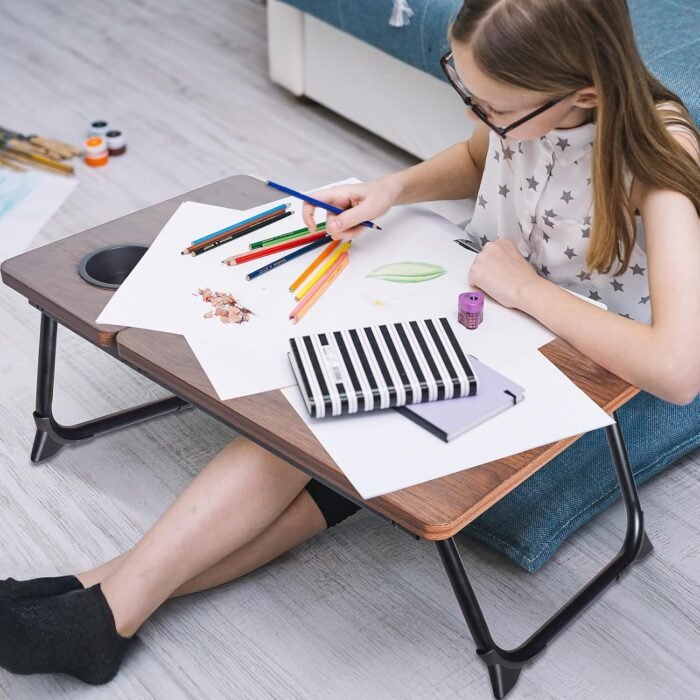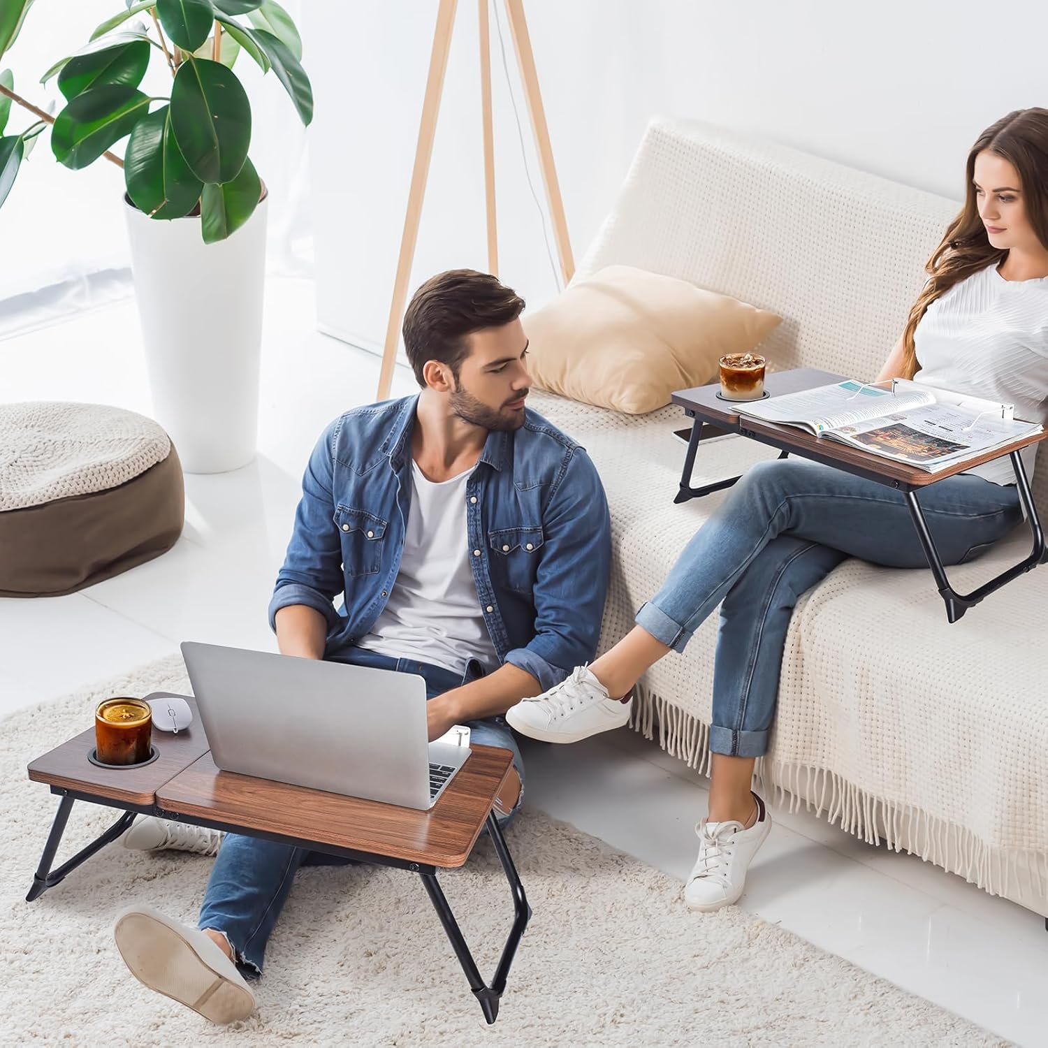 【Multi-Use】Versatile and convenient, this lap desk serves as a laptop workstation for bed and couch, a snacks tray, a lap homework/bed table, a reading and writing stand, and even a portable mini picnic stand. Fold the legs and adjust the angle to use it as a laptop stand for desk.