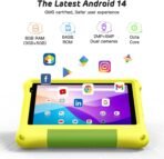 Android 14 Kids Tablet 8 Inch Tablet for Kids Octa-Core 8GB+64GB Toddler Tablet with EVA Case Child Learning Tablet with YouTube, WiFi 6, Parental Control, Bluetooth 5.4, Yellow