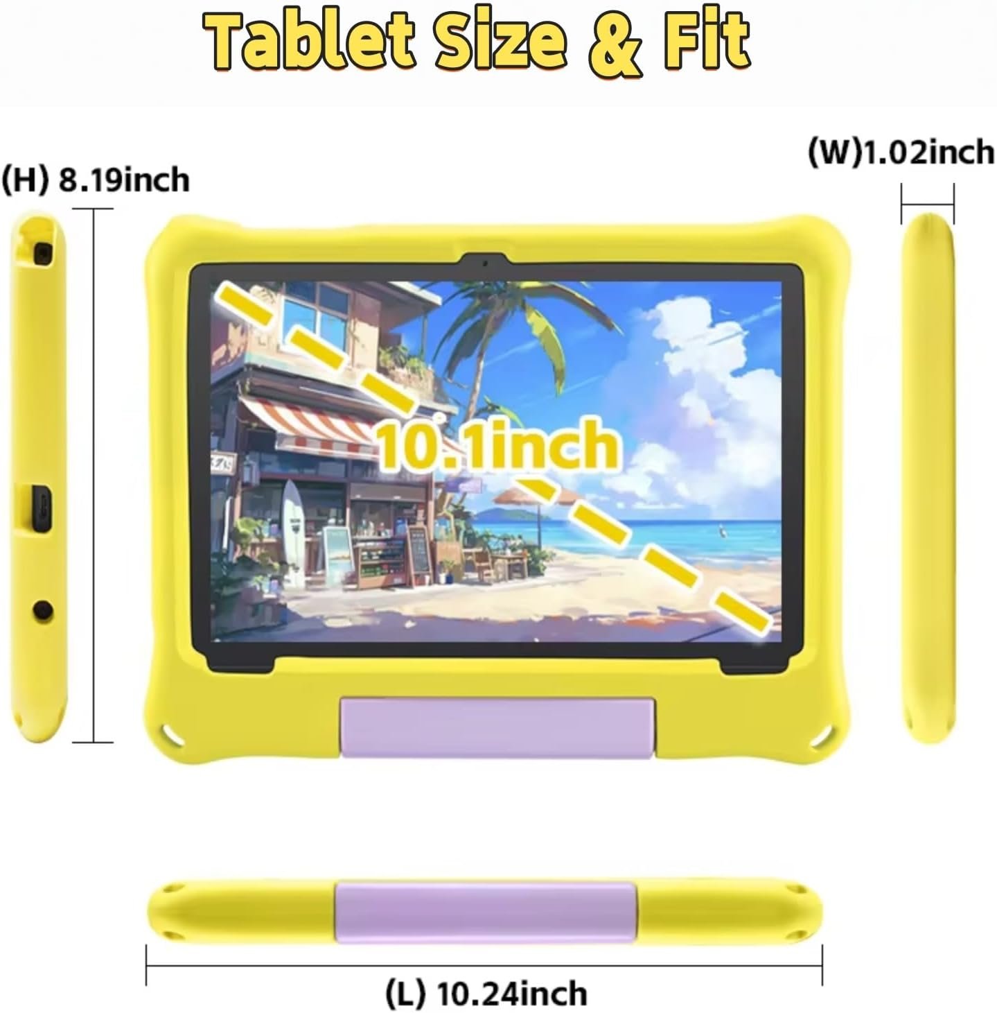 This Android 15 Tablet is designed as a safe and fun learning companion for children. Featuring a 10.1 inch HD IPS display with a 1280×800 resolution and 16:10 aspect ratio, it delivers clear visuals ideal for reading, watching videos, or using educational apps. The eye comfort mode reduces blue light exposure, helping protect young eyes during extended use. Equipped with an Allwinner A523 Octa-Core processor (up to 2.0GHz), 8GB RAM (4GB physical + 4GB virtual), and 64GB of internal storage (expandable up to 1TB via microSD), this tablet for kids runs apps and media smoothly, offering ample space for schoolwork and entertainment. Connectivity is enhanced with dual-band WiFi 6 (2.4GHz/5GHz), Bluetooth 4.2, and built-in GPS for accurate location tracking. Dual cameras (2MP front + 5MP rear) make it easy for kids to take photos, join video calls, and engage in interactive activities. GMS certification ensures access to Google Play and compatible apps. Designed with toddlers and younger users in mind, this Kids Tablet 10 Inch includes a protective EVA case for added durability and safe handling. Pre-installed child-friendly apps and parental controls allow adults to manage screen time, content, and app usage with ease. Ideal for use at home or on the go, this device is a reliable choice among tablets and tablets for kids, supporting learning, creativity, and safe digital exploration.