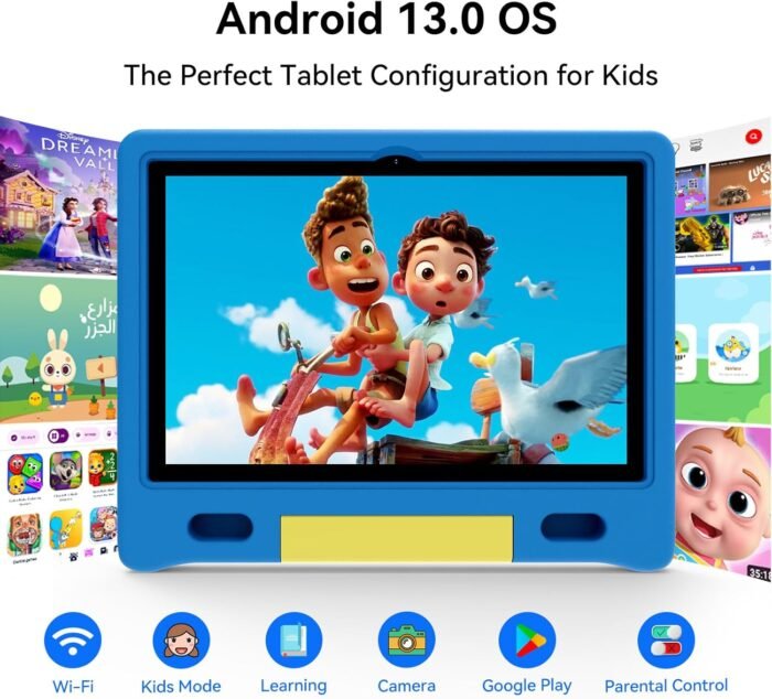 Latest Android 13+ Expandable Storage: Smooth & Swift! The 10-inch kids tablet is equipped with the latest Android 13 system, Quad-core, seamless multitasking. GMS certified for diverse app options. Store your favorite videos and images with 2GB RAM+32GB ROM, SD card expandable up to 128GB, Ideal for your child’s exploration