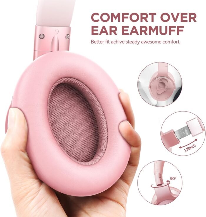 🎧All-Day Comfort Design: Super soft memory foam ear cushions ensure outstanding comfort, adjustable headband and durable 90° angled-swivel earcups to find your personal perfect fit, making the Bluetooth over-the-ear headphones ideal for all-day comfort, giving you a comfortable experience for long listening sessions.