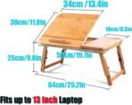 Bamboo Laptop Desk, Adjustable Portable Bamboo Laptop Table with Drawer, Folding Breakfast Tray Padded Lap Work Tray for Working Writing Drawing Surfing Reading Eating