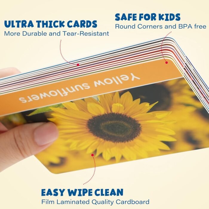 SAFE & THICK & STURDY: Our word flash cards with rounded corners are made from extra thick, quality cardboard, won’t bend or crease easily; BPA-free plastic coating for extra durability, water-resistant and easy wipe clean