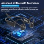 Bluetooth 5.3 & Dual Connectivity: enjoy fast, stable connections with Bluetooth 5.3 bone conduction headset, offering quicker signal transmission and reliable performance with no delays. Pair with two devices simultaneously and switch between them seamlessly for enhanced productivity and convenience.