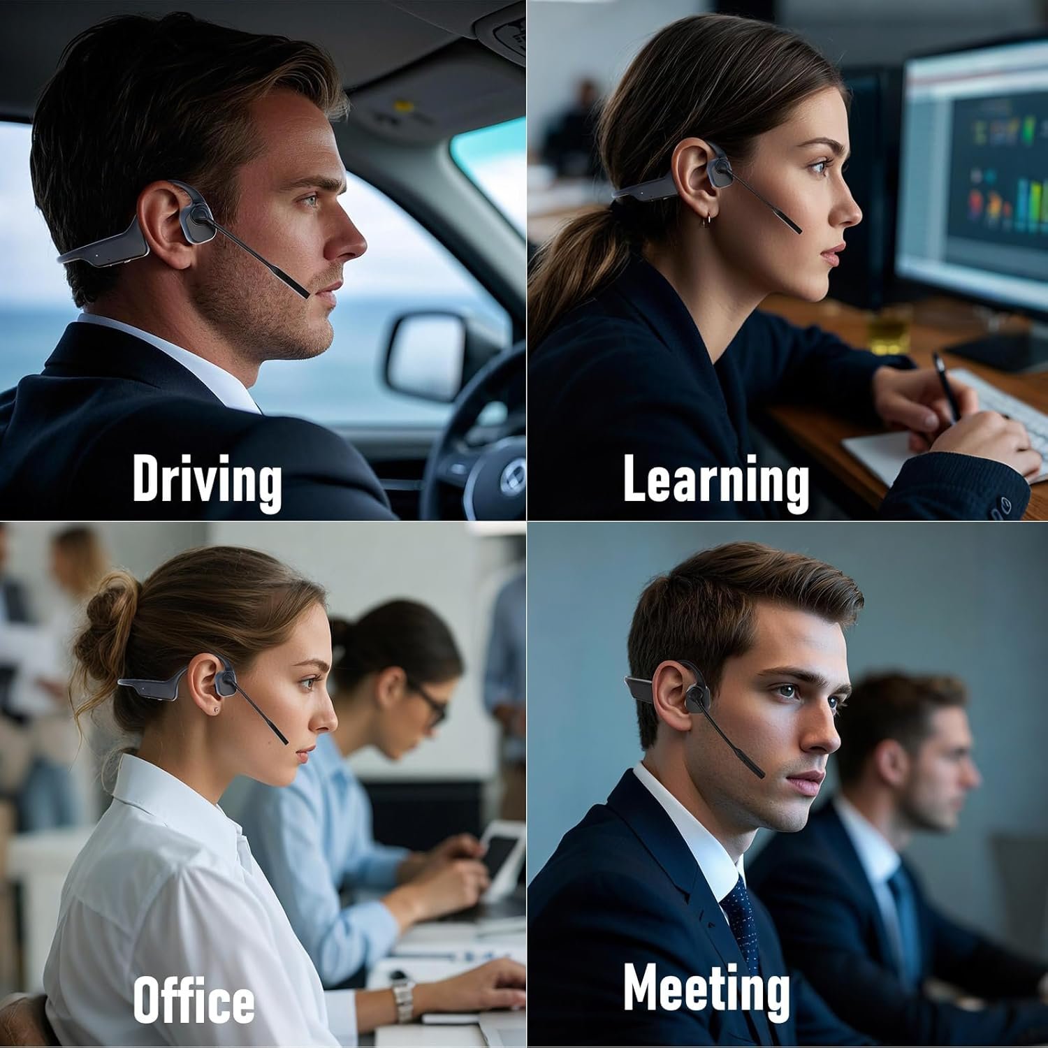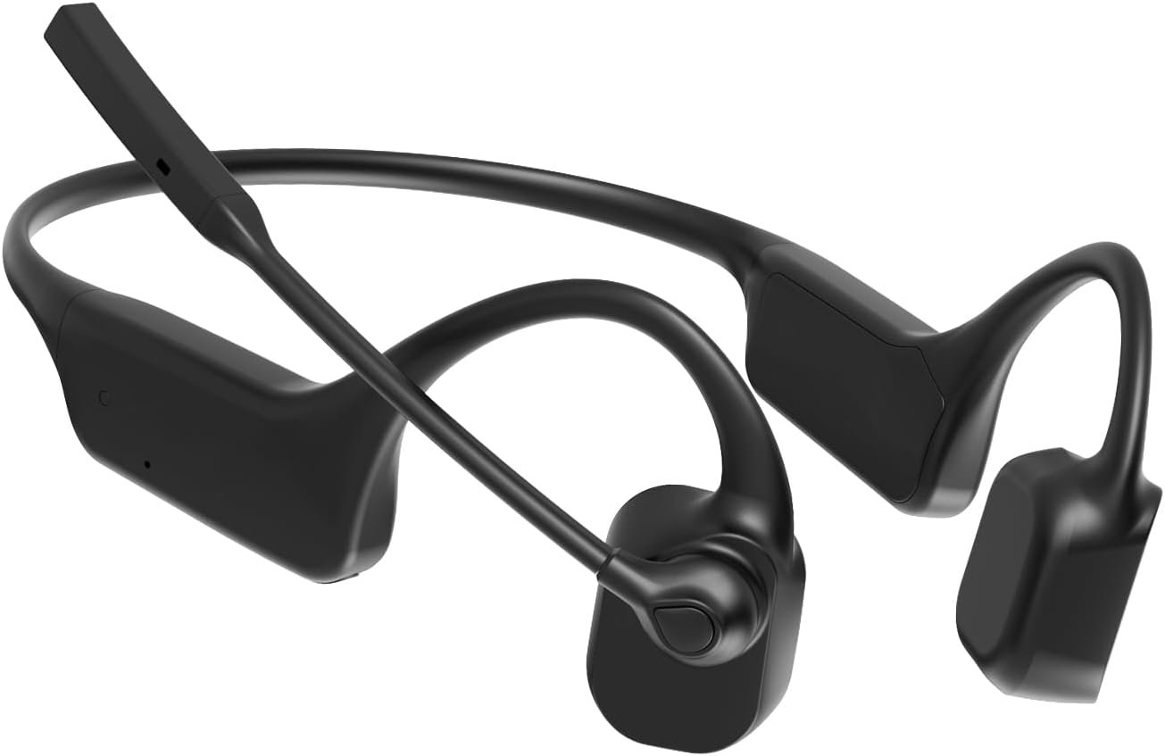 Dual Mic ENC for Crystal Clear Calls: equipped with dual-microphone ENC noise cancellation algorithm and technology, the bone conduction headphones can blockout 98% background noise effectively to ensure your voice is clear during calls, even in noisy environments. The adjustable boom mic enhances communication by picking up voice loud and clearly, making it ideal for work, sport,driving, online meetings, or learning.