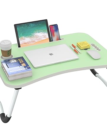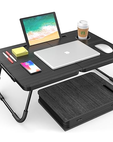 MULTIFUNCTIONAL LAPTOP BED DESK: Ideal for work, study, reading, watching movies, eating, on bed, sofa, balcony, floor, outdoor, etc. Widely used as laptop desk, kids bed table, dining bed tray, mini writing desk, office standing desk, book/ Tablet table, picnic table