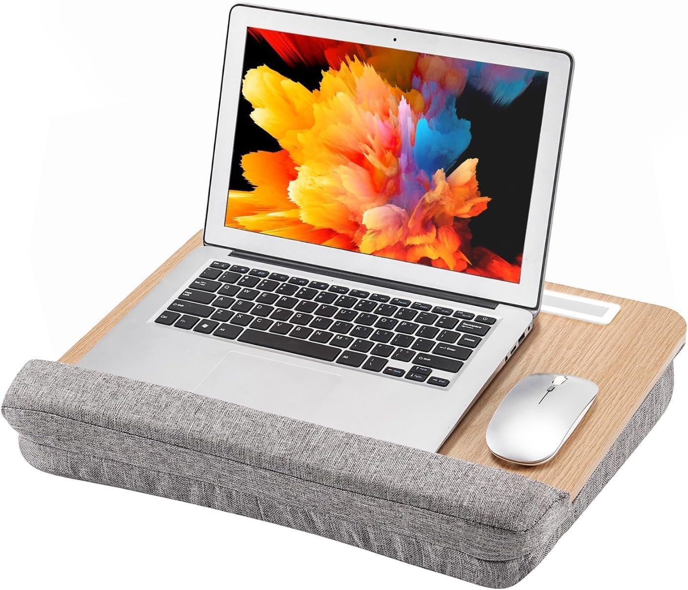 【Comfortable Cushion】This lap desk features a soft and memory foam cushion , which conforms better to your lap and keeps your laptop at a more ergonomic angle.