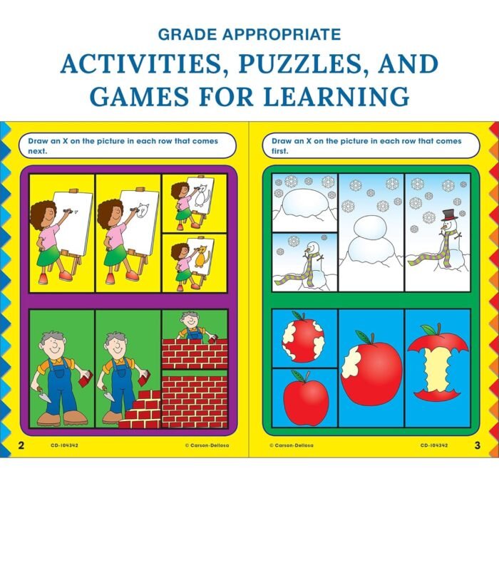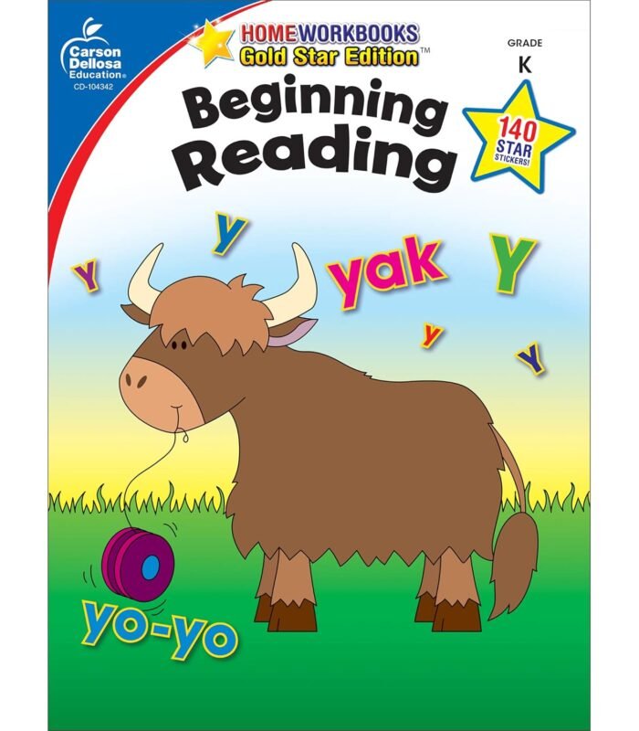 Beginner Reading Skills: Build essential reading, phonics, and motor skills for your kindergartener while having fun with Carson Dellosa’s Beginning Reading Workbook! Featuring colorful pages and art, engaging activities, puzzles, and more!
