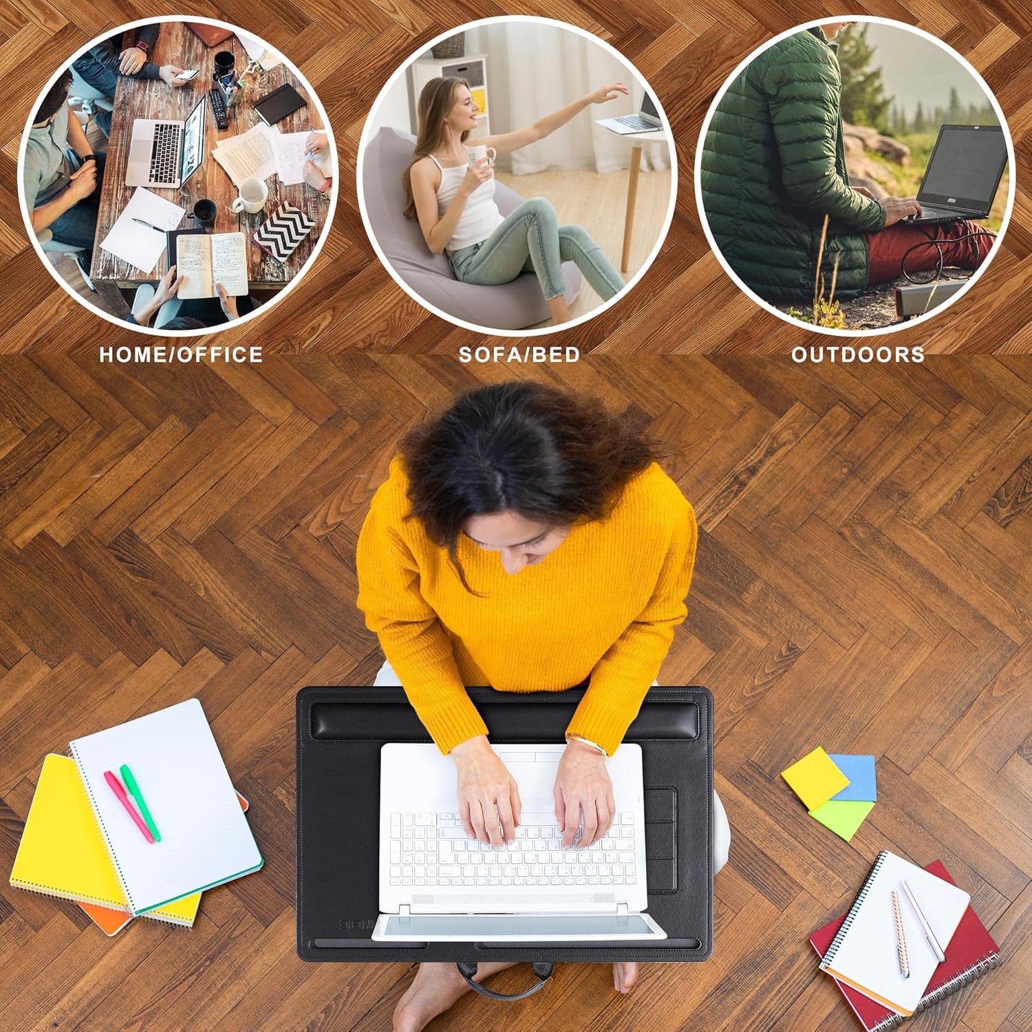 CENNBIE Leather Lap Desk with Memory Foam Cushion 24×16 Inches- Adjustable Portable Laptop Tray Fits 17 19 Inch Notebook – Built-in Wrist Rest Lightweight Computer Desk (Black)