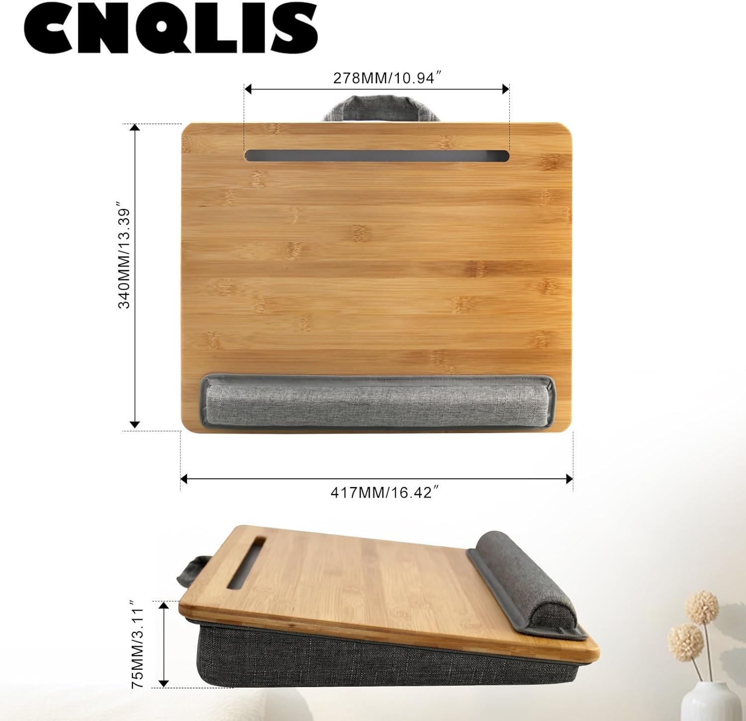 CNQLIS Lap Desk for Laptop with Cushion, Laptop Lap Desk with Phone Holder, Wrist Pad, Portable Bamboo Laptop Stand Fits up to 15.6 inch Laptops, Use Scene Bed, Indoor Sofa and Car