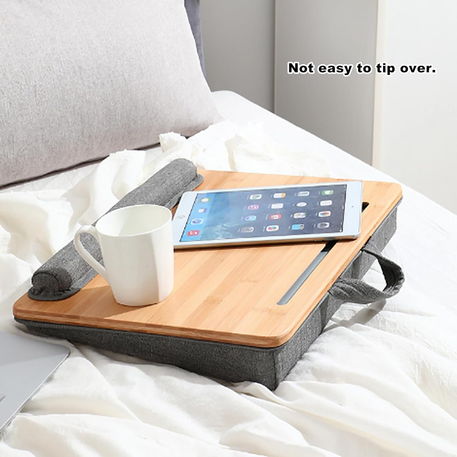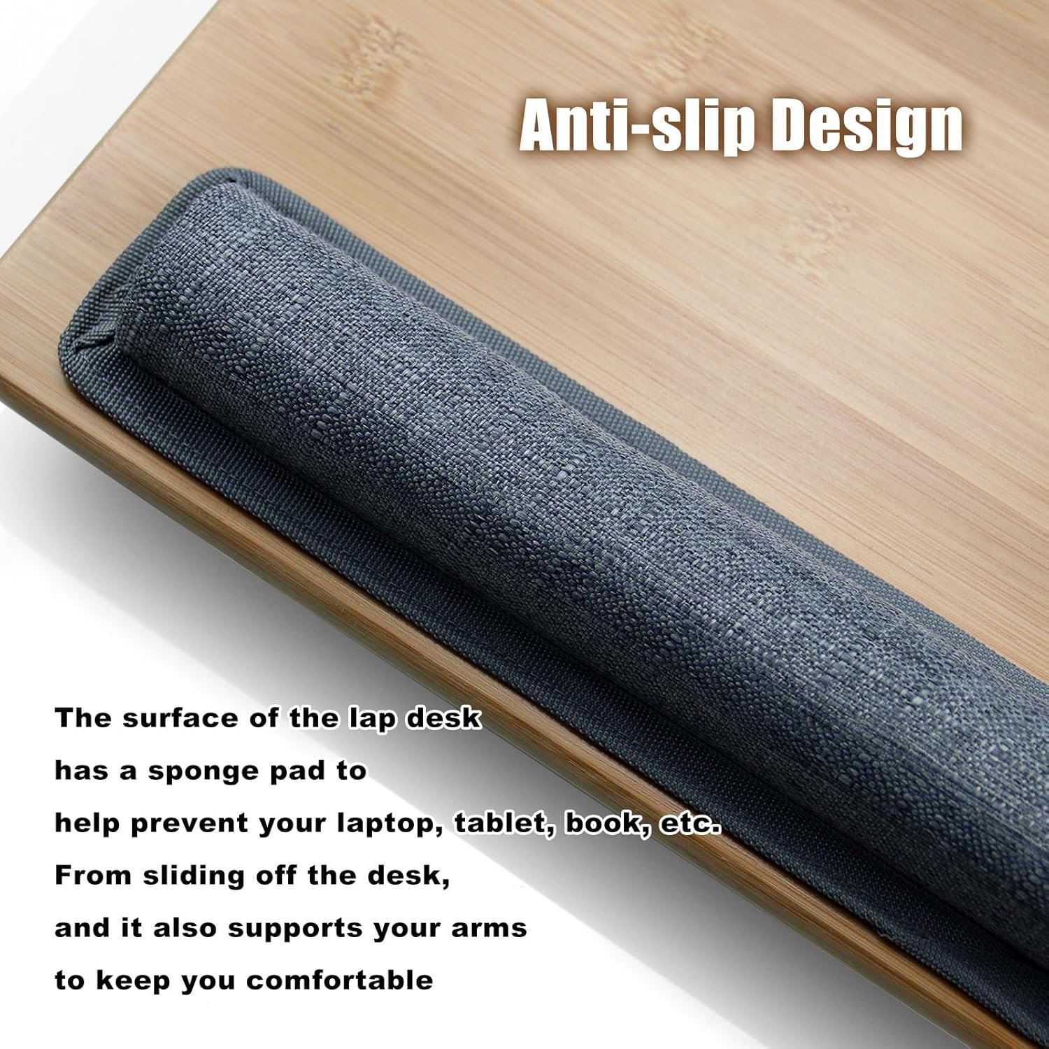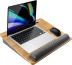 COMFORTABLE & SECURE: The breathable fabric cushion conforms to your lap for maximum comfort and stability, while the wrist cushion or anti-slip stopper keeps devices secure during use. With an ergonomic tilted surface, this desk promotes better posture and minimizes wrist stress