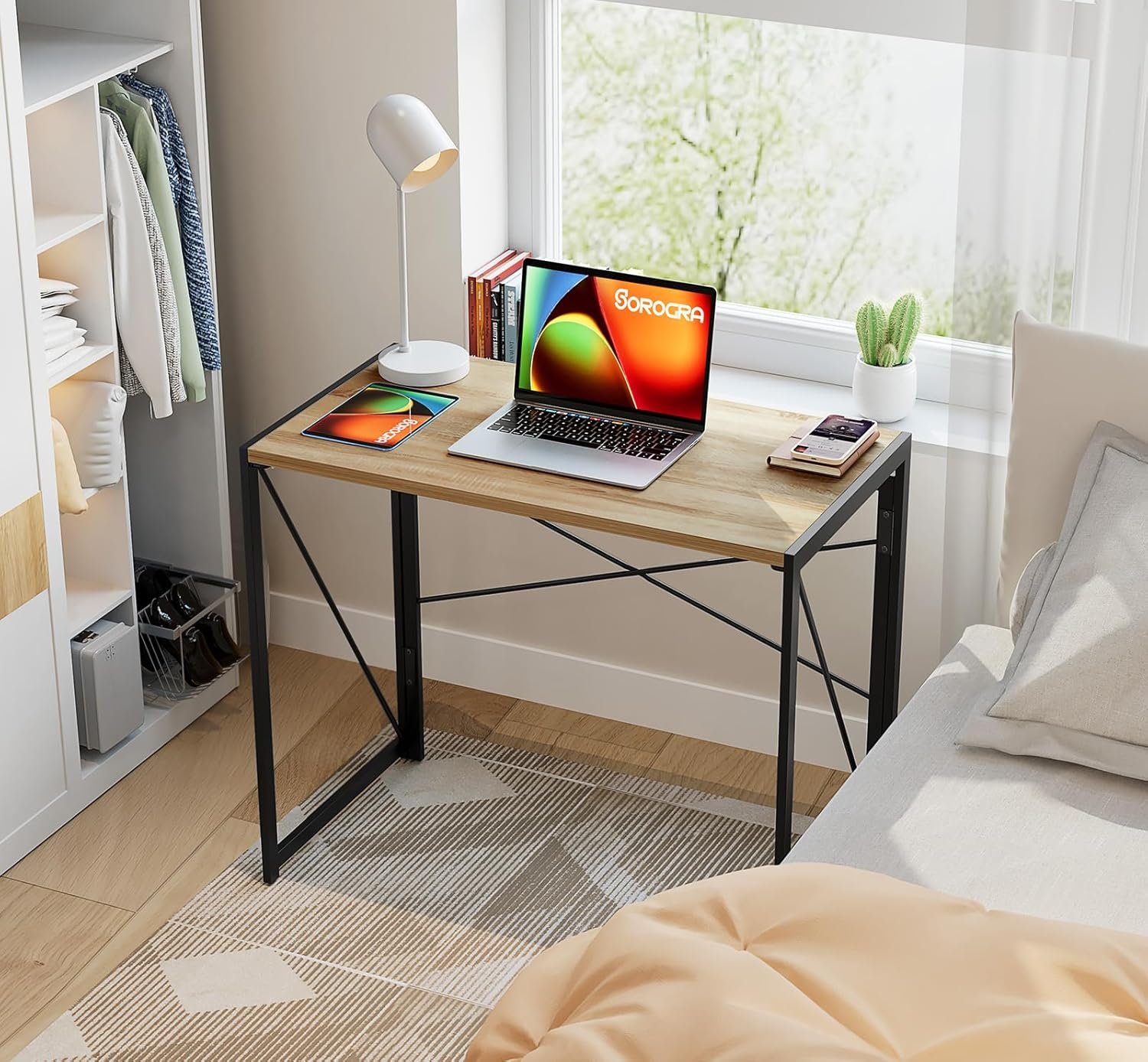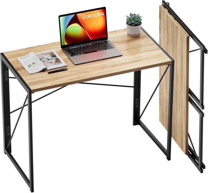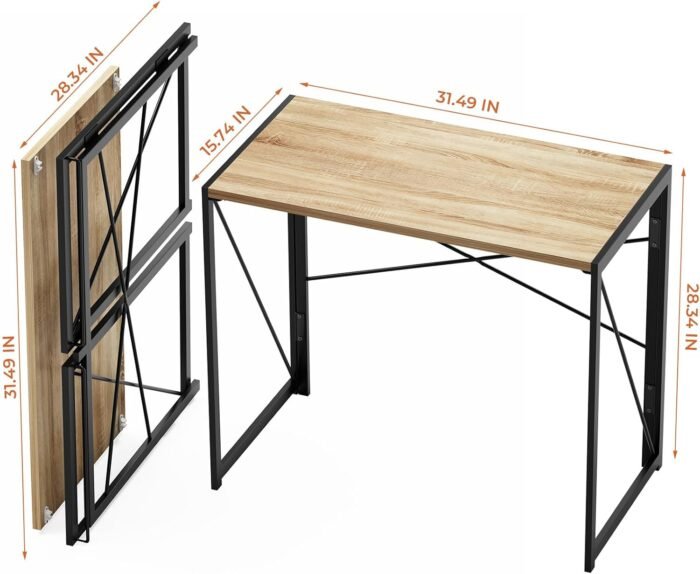 Coavas Folding Desk 31.5 inch Foldable Small Portable Computer Desks, Spaces Saving Writing Sturdy Table for Bedroom, Home Office, Dorm, Apartment, Pre Assembled, Beech