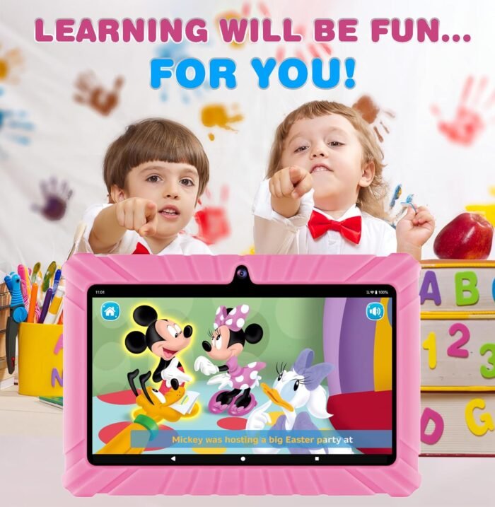 Contixo Kids Tablet Bundle – 7-inch IPS, Pre-Loaded Exclusive 50 Disney Storybooks (Value $200), Learning Tablet for Ages 3~12, Parental Controls & Kid Safe, w/Ear Headphones & Tablets – Pink