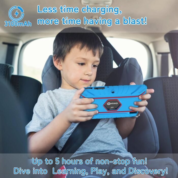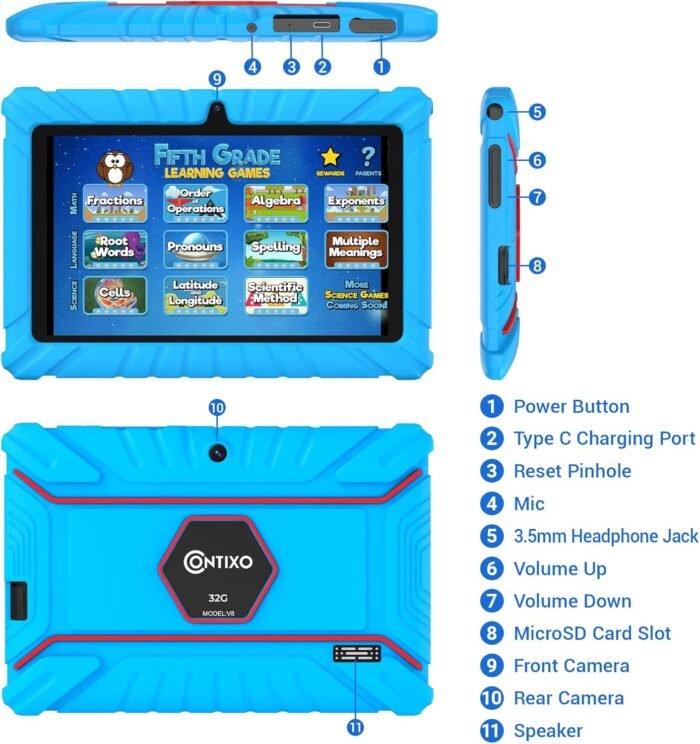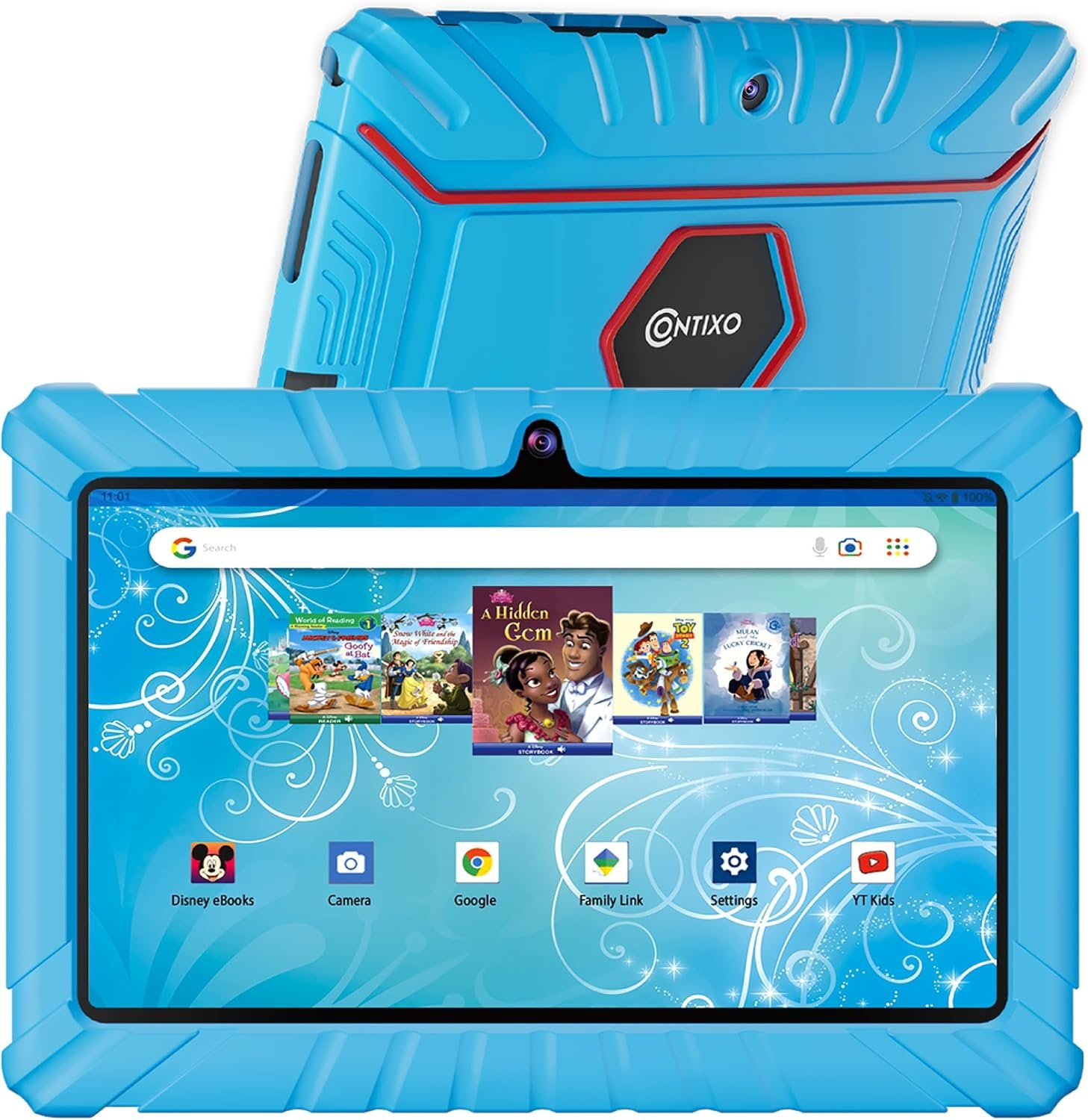 Contixo Kids Tablet Bundle – Kids Tablets and Headphones Set, 7-inch HD, Ages 3-7, Toddler Tablet with Camera, Parental Control – Android 11, 32GB, WiFi, Learning Tablet for Kids,Blue