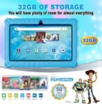 FULL-FEATURED KIDS TABLET – Equipped with latest Quad-Core Processor, 32GB Storage & 2GB RAM, Android 11 OS Operating System, beautiful 7” Touch Screen Display, and front and rear (dual) cameras. Micro SD card slot allows for an additional 128GB of expandable storage to store photos, music, movies, and videos.