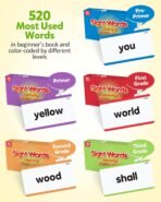520 High-Frequency Sight Words: Each card has 2 words, so you get 520 Sight words on 260 cards. Cover up to 70% of high-frequency words from Dolch and Fry Sight word lists. These flashcards are everyday words familiar to young children and a must for beginner readers. The game suggestions in each set are great for someone who struggles a bit with creativity for young children.