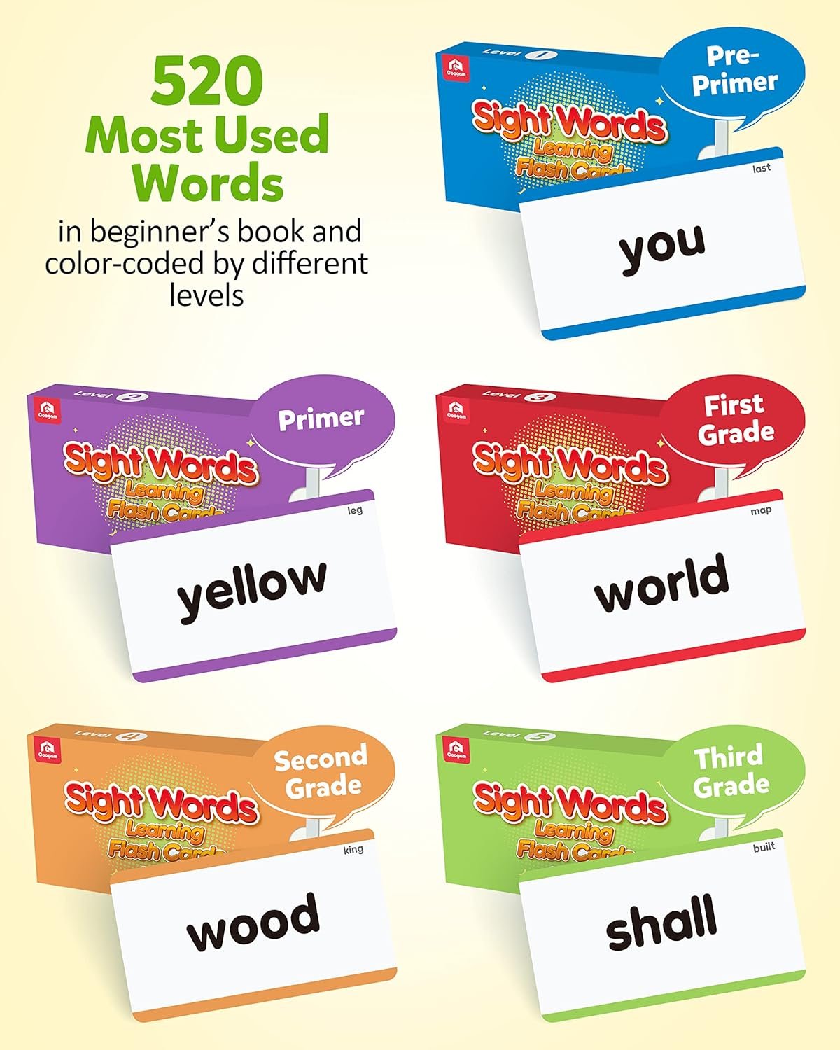 Coogam 520 Sight Words Learning Vocabulary Flash Cards, Dolch Fry High Frequency Sight Word Educational Montessori Toy for Pre-k Kindergarten 1st 2nd 3rd Grade Homeschool