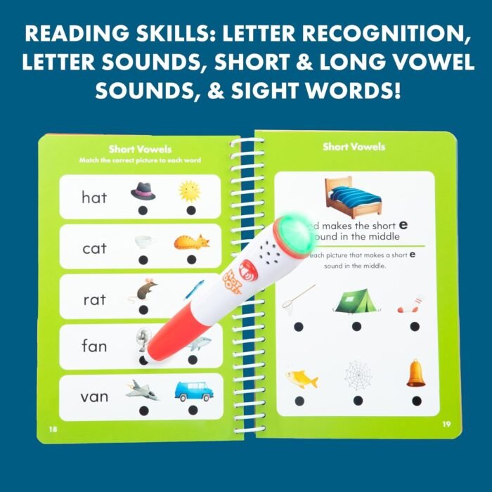 EVERYTHING YOU NEED FOR SCHOOL SUCCESS: Practice key Kindergarten skills and build academic confidence. Includes two spiral-bound activity books, each featuring 50 pages of standards-based, foundational Kindergarten reading and math activities including letter and vowel sounds, addition, subtraction, and more; and electronic Hot Dots pen with lights, sound effects, and mute button; Pen requires 2 AAA batteries (not included)