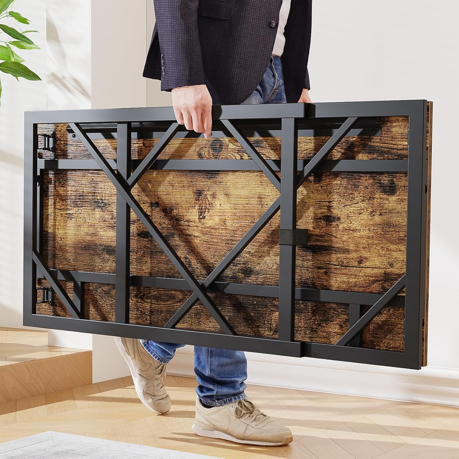 Sturdy Construction: The foldable table is made of P2 class particle board with plus thicker I-shaped steel frame, sturdier than other foldable desks.