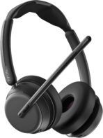 Lightweight Design for All-Day Comfort – This Bluetooth headset for work features soft breathable ear cushions and a padded headband, making it perfect for long calls and meetings in offices, home setups, and call centers.