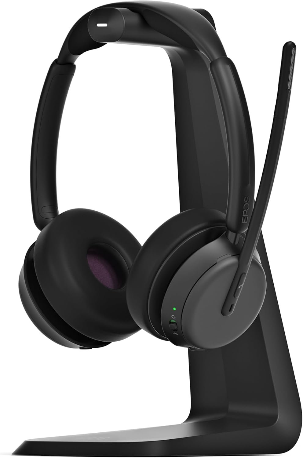 The EPOS IMPACT 1061 ANC is a premium wireless headset with mic designed for professionals in open offices, remote work, and hybrid setups. Featuring EPOS AI adaptive microphones, it delivers industry-leading voice pickup by eliminating background noise, ensuring crystal-clear communication for Microsoft Teams, Zoom, and business calls. With hybrid adaptive ANC, it effectively blocks distractions, helping you maintain focus and reduce brain fatigue. The lightweight design, breathable ear cushions, and padded headband provide all-day comfort, making it the perfect Bluetooth headset for work, virtual meetings, and business communication. Triple wireless connectivity allows seamless switching between PC, laptop, smartphone, and tablet, providing uninterrupted workflow. Smart intuitive controls let you mute calls by moving the boom arm, while the contactless charging stand ensures your headset is always ready. Designed for modern professionals, the 360-degree busylight minimizes distractions by signaling when you’re on a call. Whether you need a noise-canceling headset for office use, a business headset for laptops, or a wireless PC headset for work, the EPOS IMPACT 1061 ANC delivers high-performance audio and seamless connectivity.