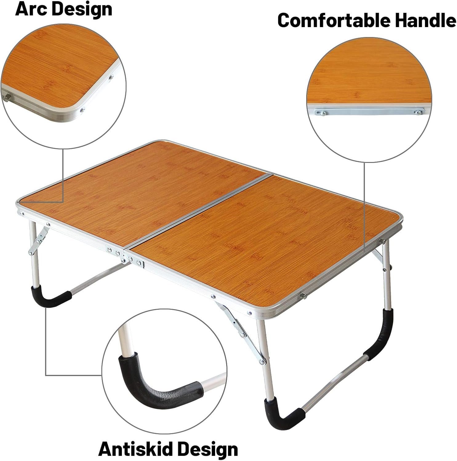 Foldable Laptop Table, Bed Desk, Breakfast Serving Bed Tray, Portable Mini Picnic Table & Ultra Lightweight, Folds in Half with Inner Storage Space (Bamboo Wood Grain)