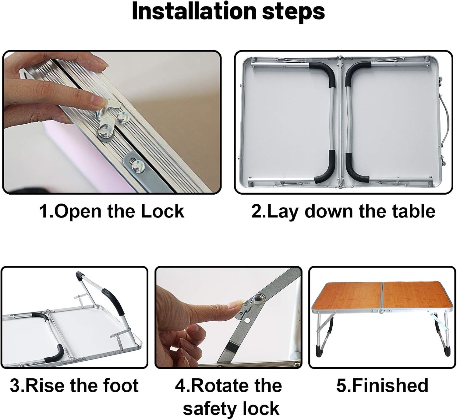 EASY TO USE – just pull out foldable legs and set up the table by supporting buckle, no assembly required.