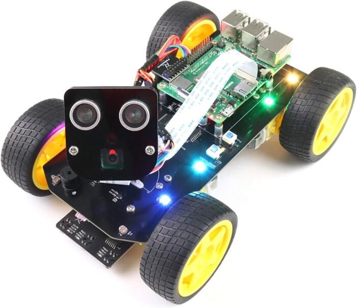Multiple Functions: This car has four drive wheels, the rotatable head has a camera and an ultrasonic distance sensor (Assembly required) (Raspberry Pi and Battery NOT included)