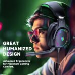 Customers praise the gaming headset’s sound quality, highlighting its stereo surround sound technology and clear microphone, while also appreciating its comfort with soft ear cushions and adjustable design. Moreover, the headset offers good value for money, with one customer noting it works well with any device, and customers find it durable and well-made. Additionally, they like its style, with one mentioning it’s better than premium earbuds, and appreciate its lighting features, with one noting the customizable lighting effects.