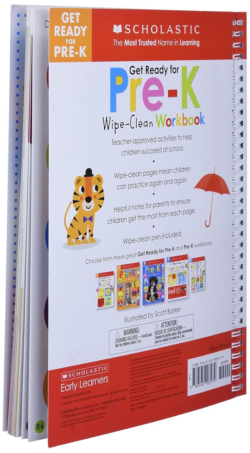 This interactive workbook boosts essential preschool skills. Featuring pictures, shapes and patterns for children to trace, the wipe-clean workbook allows for repeated practice that will build future writing confidence and achievement.56 pages of activities focus on important preschool skills, including: letters, numbers, shapes, colors, animals, seasons, weather, vehicles, people, food, tracing, vocabulary, and writing.Builds fine motor skillsSpiral-bound wipe-clean pages allow for repeated practiceIncludes a wipe-clean pen and high gloss wipe-clean pagesAimed at children ages 3-5Bright, colorful pages blend photographs and illustrations to make this workbook one of the most eye-catching and engaging availableTeacher approved!Scholastic Early Learners is a dedicated learning program that builds school skills from infancy through second grade. Created by experts and focused on reinforcing curriculum topics and current academic guidelines with kid-friendly activities, this educational line is the best partner in your child’s learning journey.Scholastic Early Learners: The Most Trusted Name in Learning!