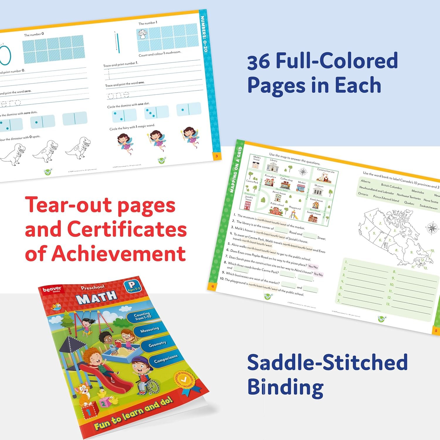 Head Start Workbooks for Kids Ages 3-5, Fun Preschool Workbooks for Learning Reading and Writing Basics, Before School Workbooks with Math, Printing, Phonics, and Skills