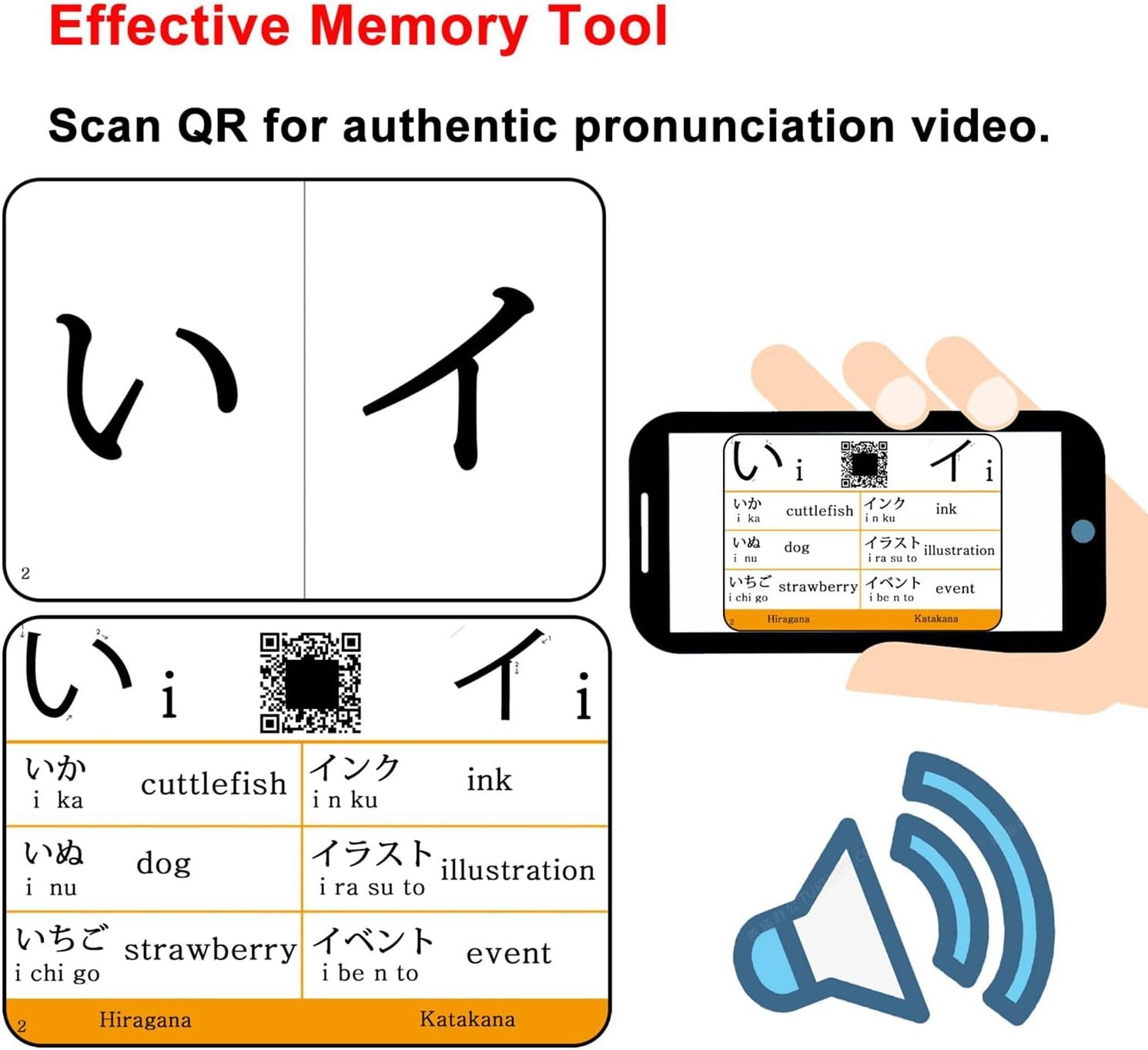 Perfect Your Pronunciation: Each flashcard contains a QR code that takes you to a free video of pure pronunciation for that Japanese syllabary card. Through correct pronunciation, helping you perfect your Japanese-speaking skills.
