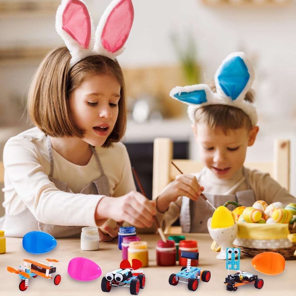 JOICEE Prefilled Easter Eggs with STEM Kits for Kids,Jumbo Science Robot Building Kits Cars Crafts STEM Toys for Boys Girls Easter Basket Stuffers School Classroom Prizes Gifts Party Favor Supplies.