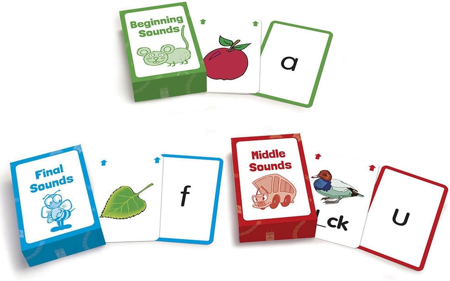 Contains 162 flash cards for teaching letter sounds including: beginning sounds, middle sounds and final sounds. Ages 4+.