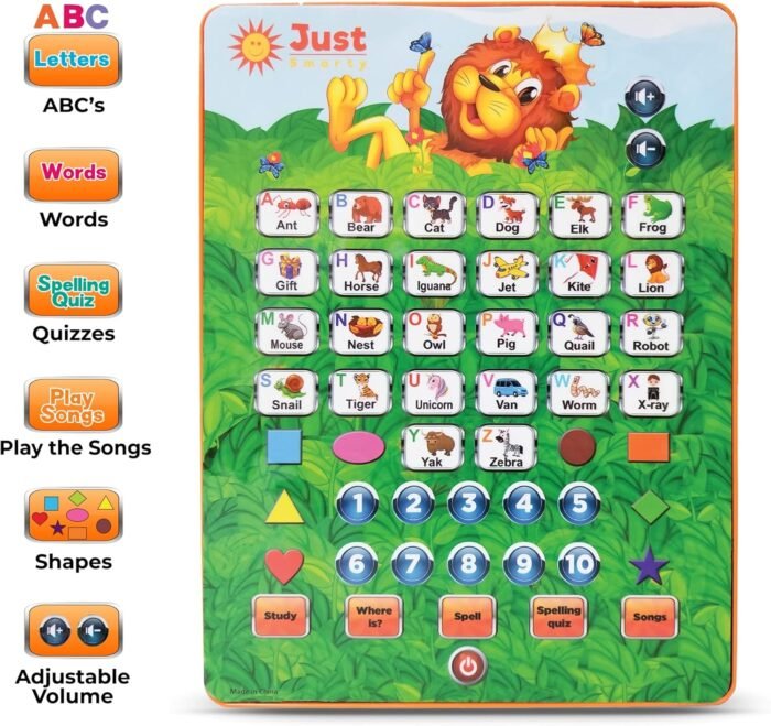 Just Smarty Alphabet Tablet to Learn Letters, ABC, Numbers, Shapes, Colors, Music & Words, Interactive Toddler Learning & Education Toys for Kids – Gifts for Age 3 4 5 Year Old Boys and Girls
