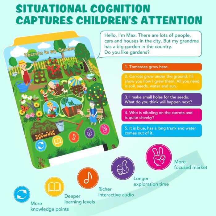 20 Thematic Worlds for Exploration:The educational toy 2 year old takes children on a journey through 20 unique and exciting thematic worlds. From exploring the mysteries of the ocean to traveling through outer space, each theme offers fun stories and activities to spark curiosity. Kids explore nature, build emotional intelligence, and develop global awareness, nurturing a love of learning.