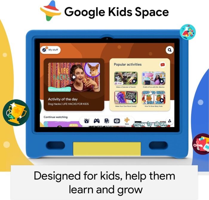 Protective Standable Case for Active Kids: Designed with a durable, drop-resistant case, this tablet is built to withstand rough handling and accidental falls. The integrated stand allows for hands-free use, making it convenient for learning, entertainment, and interactive play.
